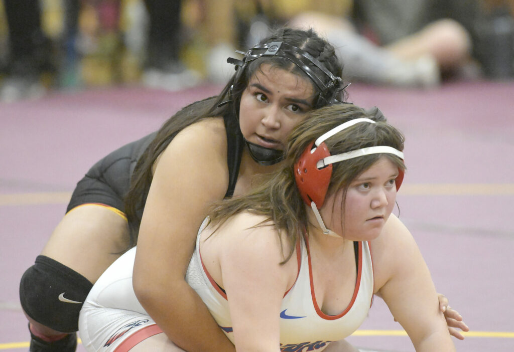Los Banos’ Angelina Hernandez, left, competed against Firebaugh’s Mercedes Amador on Dec. 3 as Los Banos hosted three teams