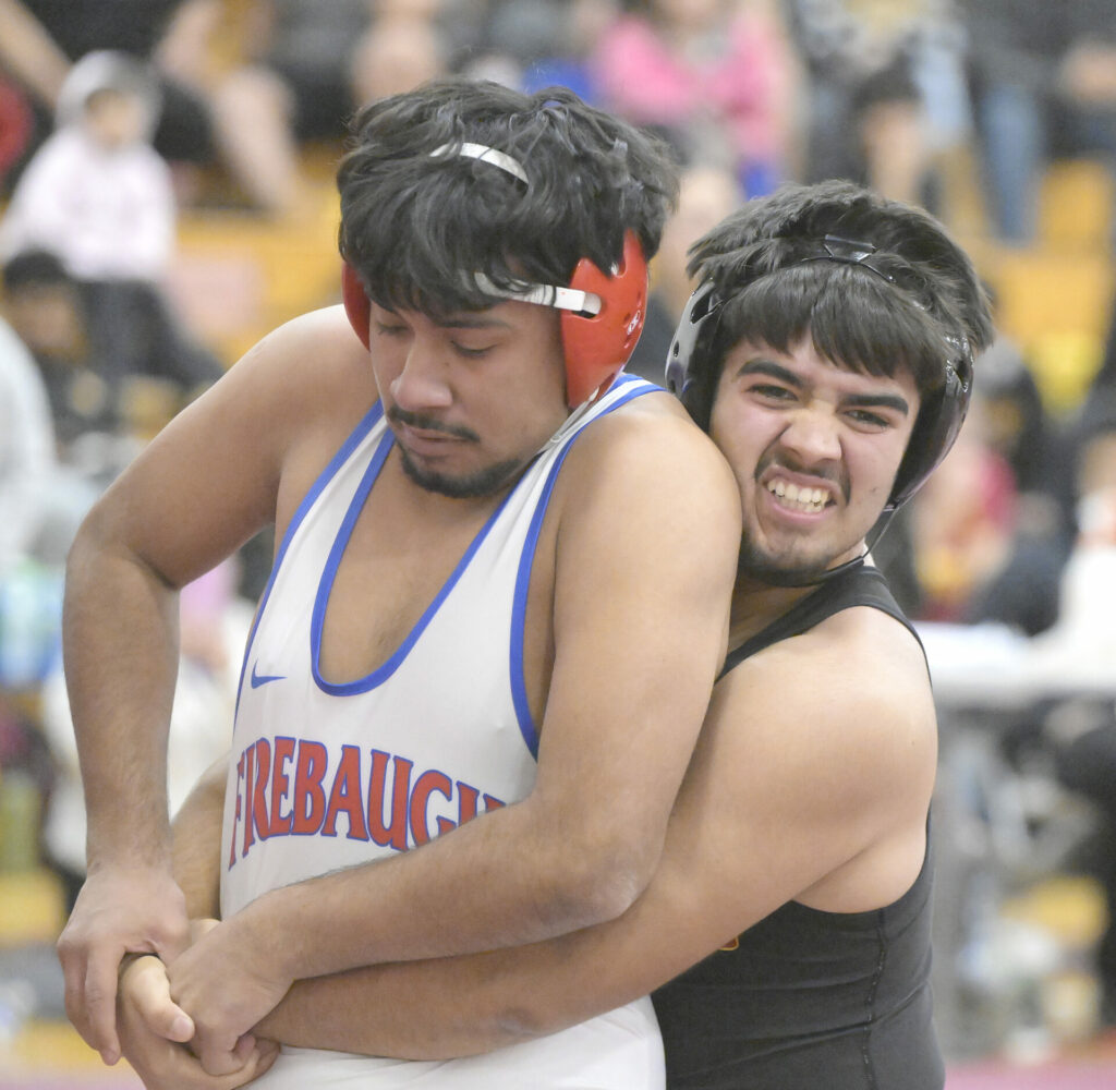 Adrian Rivas, right, wrestles his Firebaugh competitor in the 190-pound division on Dec. 3