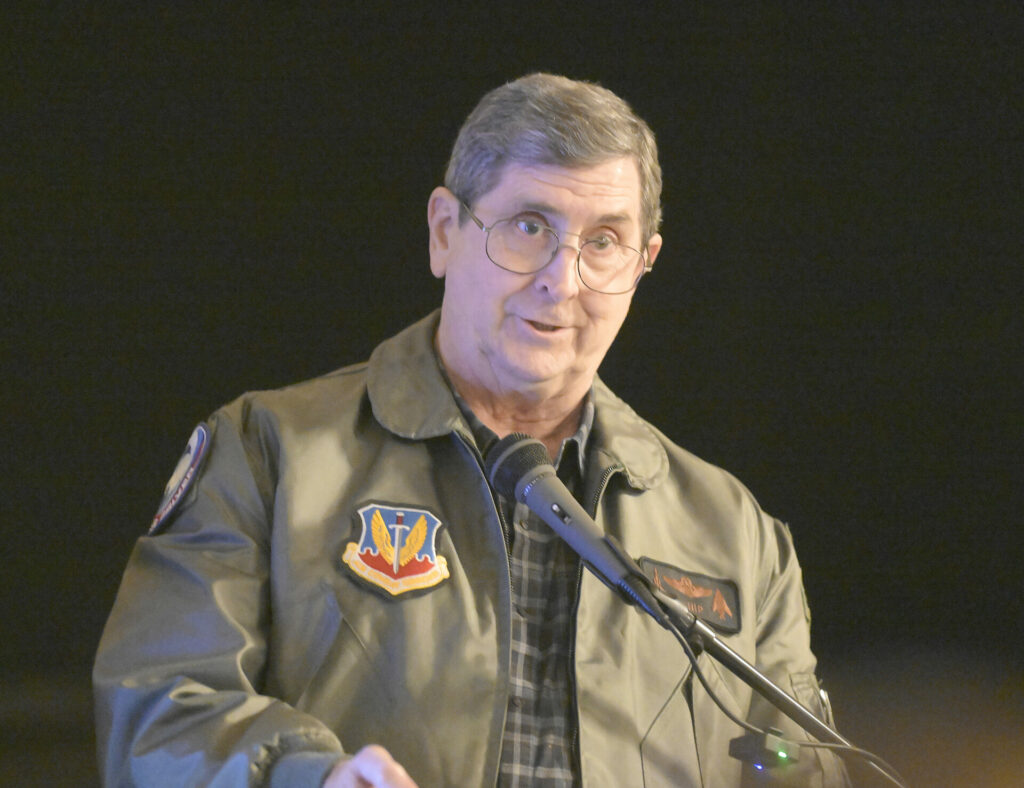 Retired Air Force fighter pilot Paul Setnor was the final panelist to address the audience, offering a perspective from more recent service. After graduating from Los Banos High School in 1970, he piloted the F-117 Nighthawk, a stealth fighter bomber, and also flew the F-15.